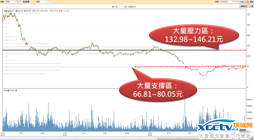 ( 资料来源:筹码K线 ) ( 注:宏达电分价量统计图 )