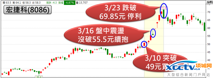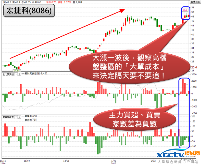 2015/3/10(二) 宏捷科(8086) 突破大单成本 49 元后买进,