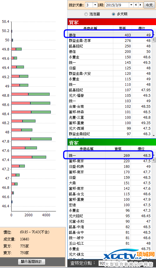 盘中马上可以看看 2015/3/13(五) 近 3 天的价量分布