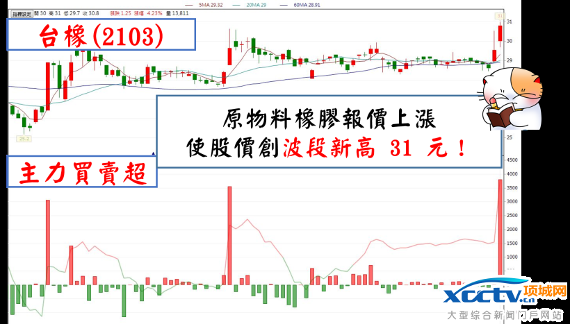 强势股:台橡(2103)、岳丰(6220)、胜丽(6238)、台泥(1101)、祥硕(5269)