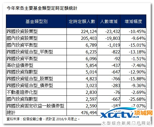 投信投顾报告书 今年来定时定额人数衰退 减少近5万人