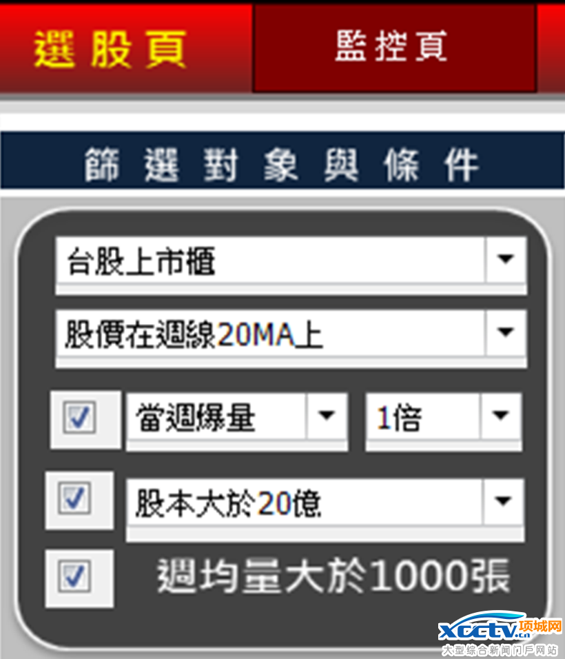 2. 勾选当週爆量一倍:有带大量上涨站上週 20MA 表示上涨力道较强