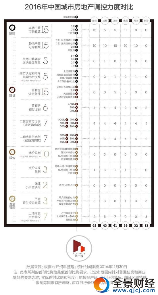 新一酱花了一周的时间,完整收集了这20座城市以及北上广深的房产调控政策,并且给它们做了打分。接下来的图表将分4组来分别展示调控力度,注意,从前往后调控力度依次递减。
