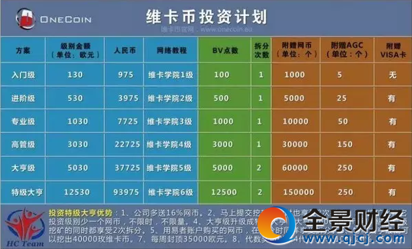 根据“维卡币”的玩法,共有五个级别的会员,即入门级、进阶级、专业级、高管级和大亨级,根据不同级别分配不同的代币数。