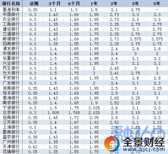注:数据收集时间为2016年四季度末,同一家银行在不同地区的存款利率也可能不同,比如工商银行一年期存款在北京的利率是1.75%,但是在上海的利率是1.95%。