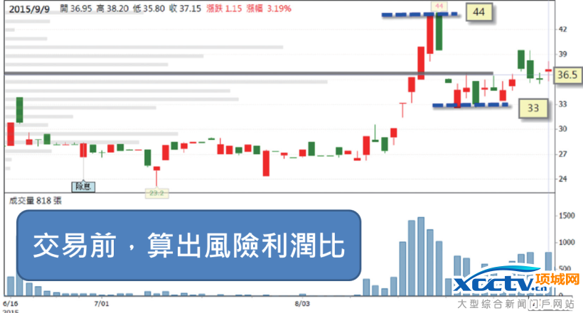 取这一段时间的最低价 33 元为 停损价;