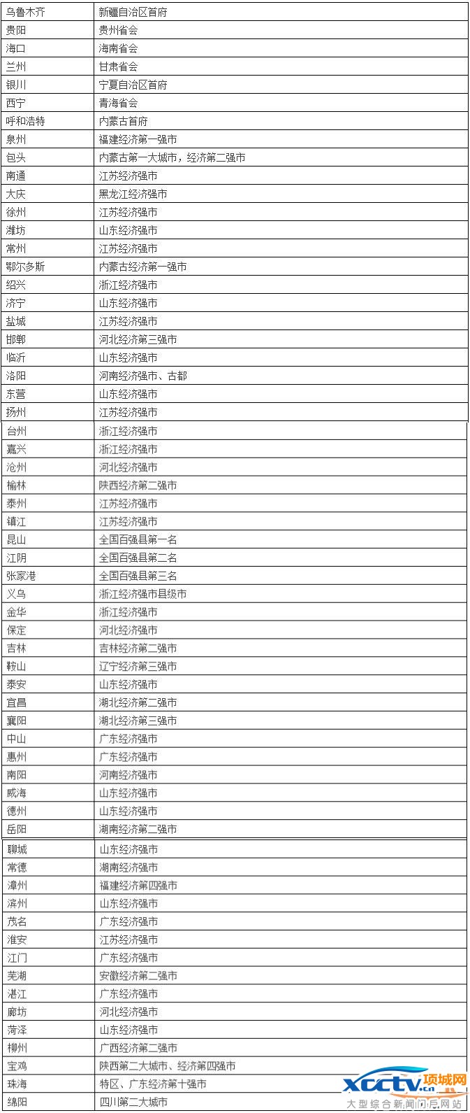 ??除以上以外的所有县级市和经济强县、城市规模大县。