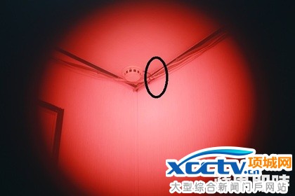 透过红外线镜头侦测器,藏在侦烟器右侧的针孔镜头发出光点,无所遁形。