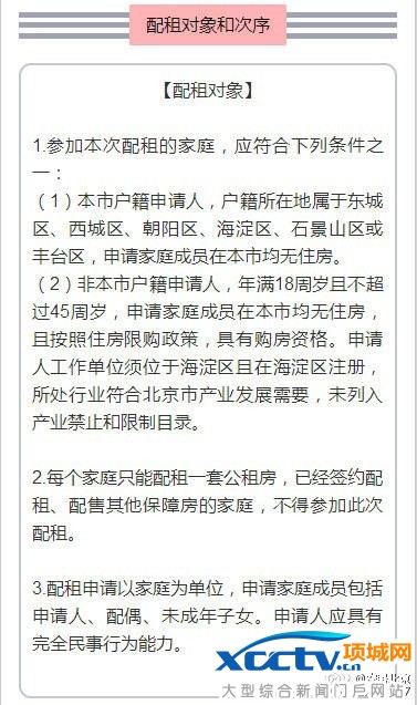 而对于本市户籍的申请人,年龄条件则已经取消,不再受上次公告中“年龄不超过35岁”的限制。不过,京籍申请人的户籍所在地则有所要求,要属于东城区、西城区、朝阳区、海淀区、石景山区或丰台区,申请家庭成员在本市均无住房。