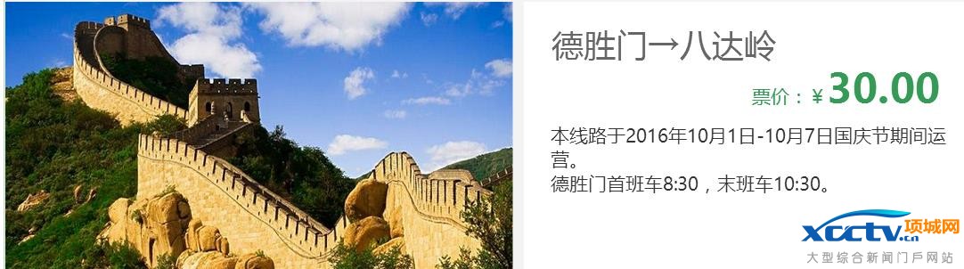 市公交集团介绍,10月1日至7日,公交集团将开通7条节假日专线,方便乘客由市区、大型居住区前往八达岭长城、通州大运河森林公园、密云古北水镇、大兴南海子公园、念坛公园等地游玩。其中,首次开通的东直门外至密云古北水镇的线路将于9月28日提前上线运营。