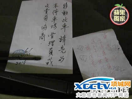 白色轿车车头明显越线,造成他人无法停车。 白色轿车车头明显越线,造成他人无法停车。 白色轿车停放近两年不管,车体蒙上一层厚灰尘。 停车场留纸条要求车主处理。
