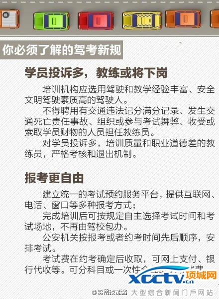 新《大纲》中关于驾考费用与支付方式的规定列明,以后的驾考将施行“先培训后付费”模式。具体做法是:在学员科目一考试合格前不交任何费用,学员科目一考试合格,并通过报名平台成功报名后,再选择班别并缴费。