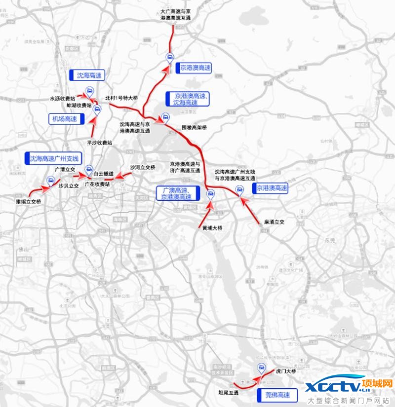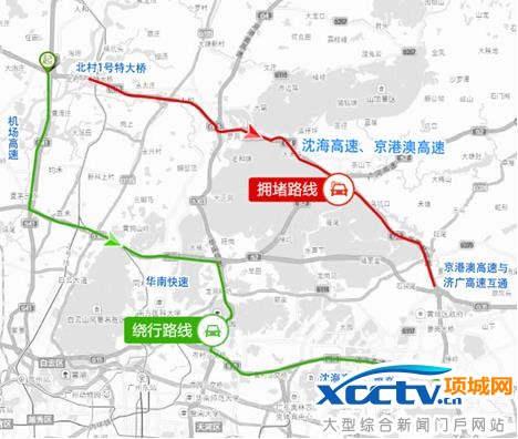 拥堵时绕行建议:沿机场高速-华南快速-沈海高速广州支线行驶,转向京港澳高速。