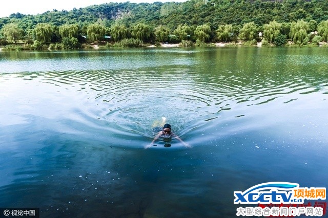 崔欢在游泳健身,强化训练体能。