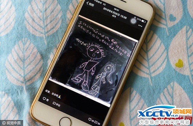 刚上小学二年级的女儿给吴强画的画,“抱怨”他工作太忙了。