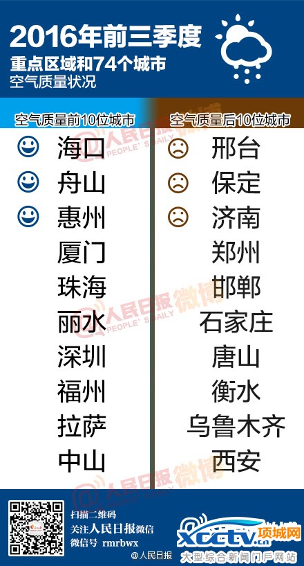 2016前三季度空气质量排行榜名单出炉:看你的家乡排在哪里(图)