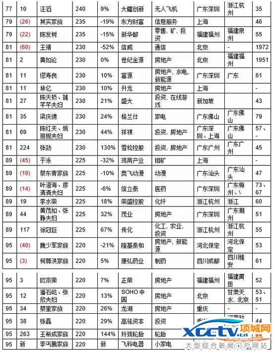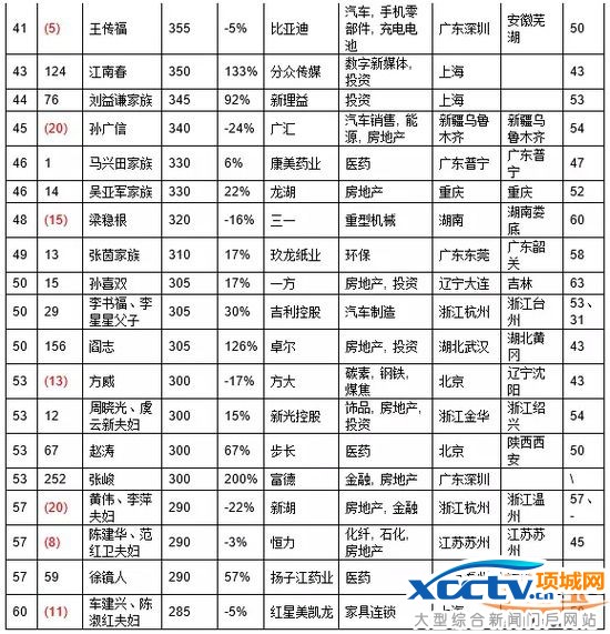 上榜富豪上市公司财富计算的截止日期为2016年8月15日,美元与人民币的兑换比例按照1:6.7计算,港币与人民币的兑换比例按照1:0.85计算。