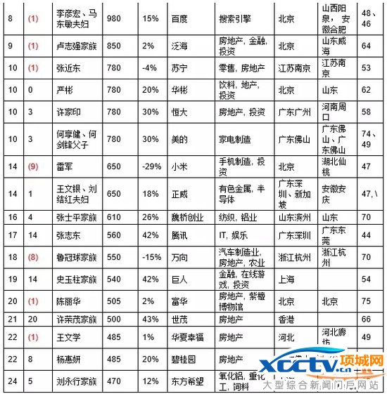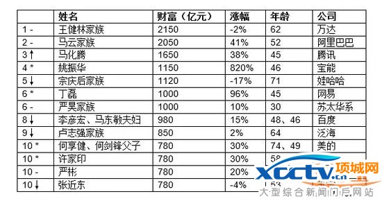 前十名相对稳定。去年位列前十的小米雷军和万向鲁冠球今年跌出前十。