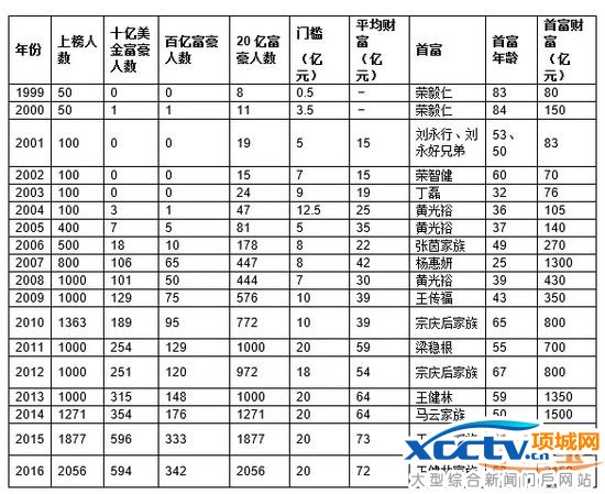上榜门槛连续四年保持20亿元,今年有2056位企业家上榜,比去年又增加179人,比三年前翻了一倍,上榜人数达历年之最。前10名的上榜门槛比去年提高20%,达到780亿。前1000名的上榜门槛从去年的39亿提高到40亿。
