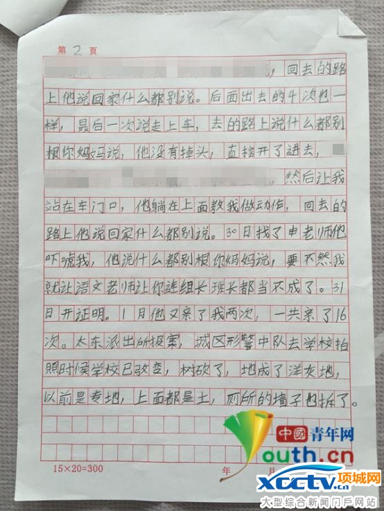 8岁女孩手写“性侵”笔记 指证男老师施暴过程