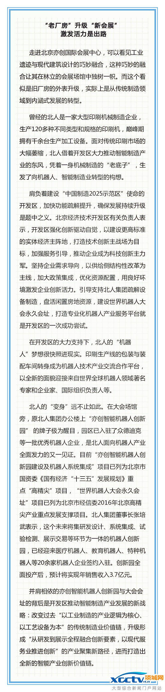 本届大会的主会场——北京亦创国际会展中心本身也是北京亦庄大力推动转型升级、优化创新环境的最新成果。就在不久之前,这里还是北人集团印刷机制造厂的厂房。如今,已蜕变为一座总面积8万平米、拥有完善生态设施的现代化科技会展中心了。