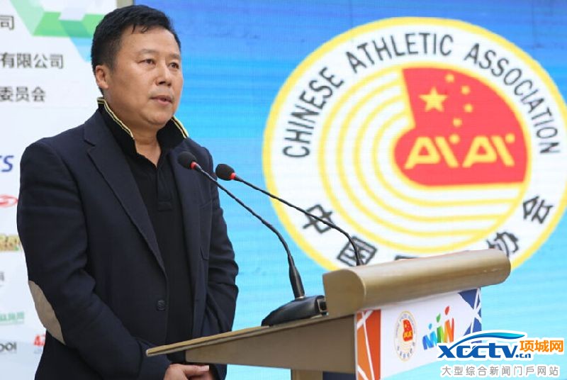 中国田径协会马拉松办公室主任水涛在发布会上致辞