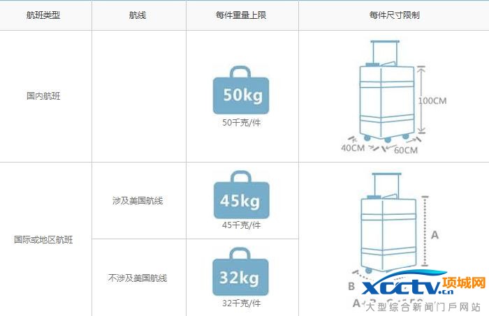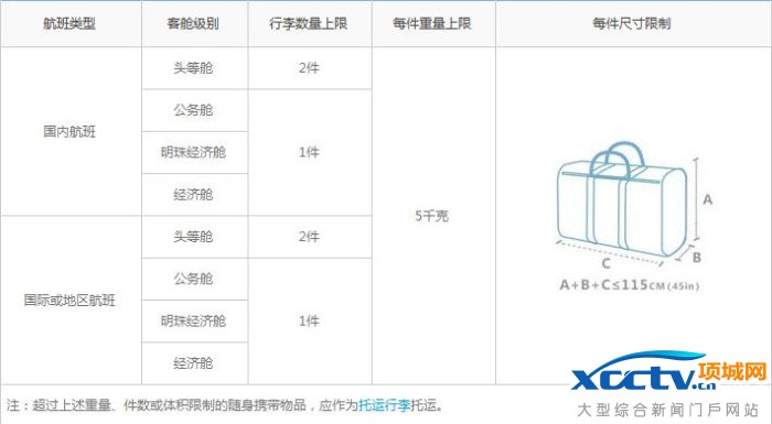 2、以上行李的规格(包括体积与重量),均为航空公司所能接收的最大值,并非免费行李额,您需要为超出免费行李额的部分进行付费;