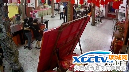 三圣宫出示监视器画面,向《苹果》证实此事,该庙主委游振雄说,当天下午4点半左右,先有2名学生前往求助,说有一名女学生「沖煞到」,志工先请它们上香拜拜后,求「敬茶」回去给不舒服的学生喝下,似乎有缓解。