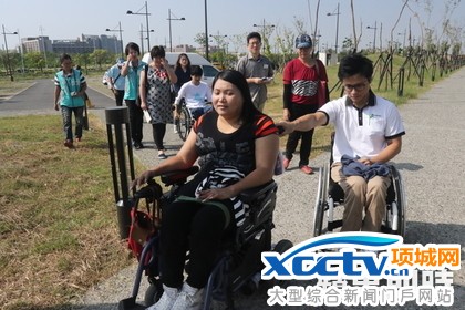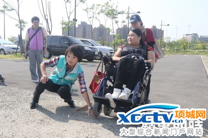 从停车场要去搭接驳车处的坡道,光靠手力根本爬不上去,只有电动轮椅才能爬上去。