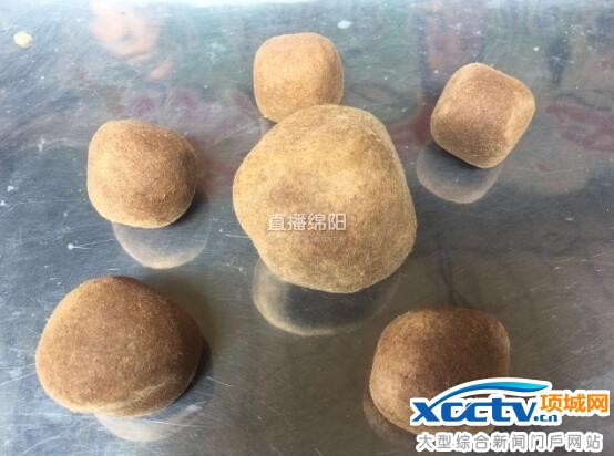 说话间,陈勇的妻子小心翼翼地端出了一个大盘子,里面装着6个咖啡色物体。直播绵阳记者称了一下,最大的一颗有75克重,最小的一颗也有40克重,总重360克。