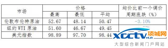 根据国家发改委价格监测中心的监测,受欧佩克落实限产计划的不确定性加大和美元升值影响,国际市场原油价格震荡下降,布伦特、WTI原油期货平均价格比上轮下降2.44%。