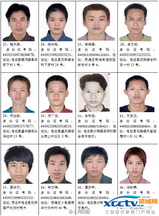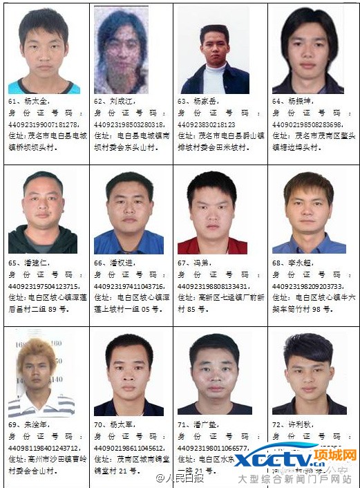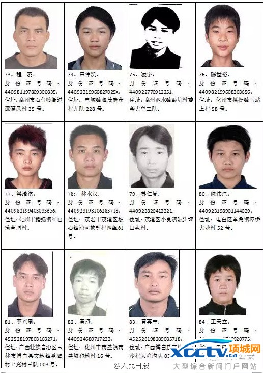 广东茂名缉拿95名重点涉枪逃犯名单公布 举报奖金高至万元