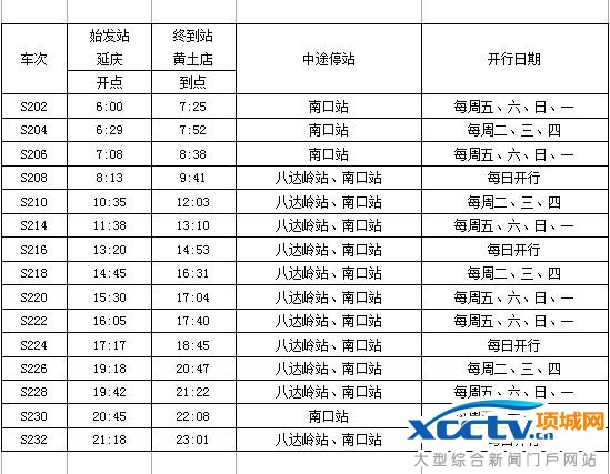 北京市郊铁路S2线最新时刻表公布 自2016年11月1日起