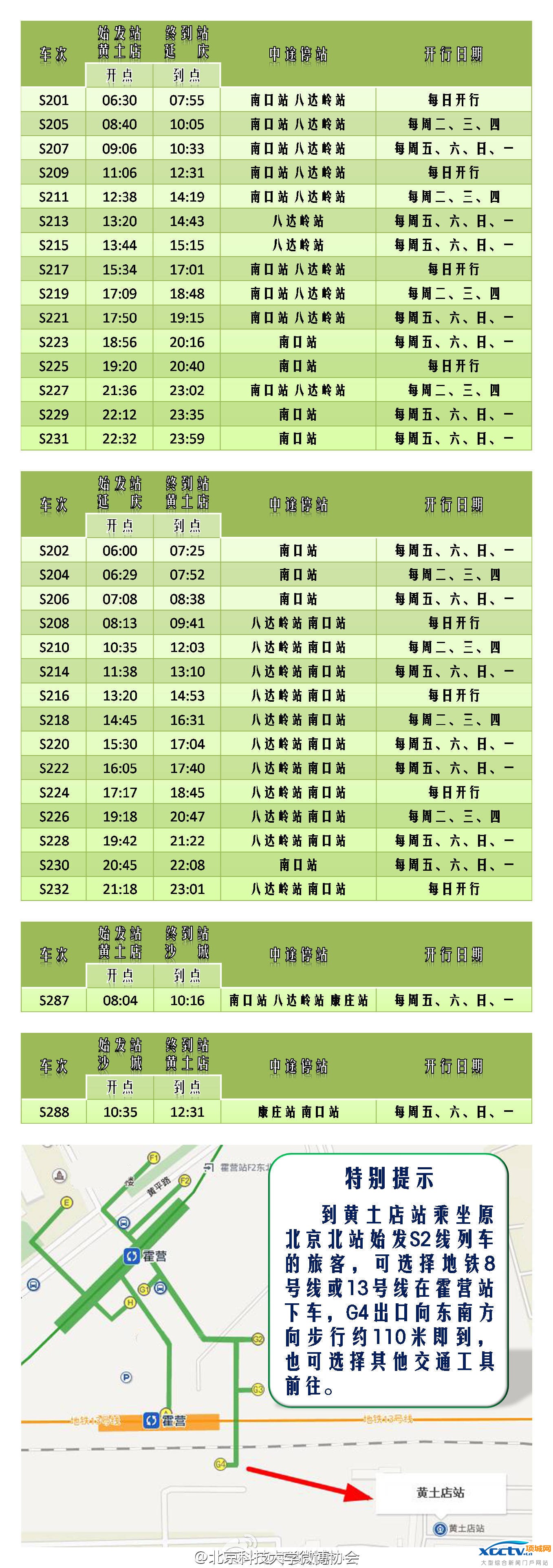 2016年11月1日起北京北站停运3年 市郊S2线始发站挪至黄土店站乘车