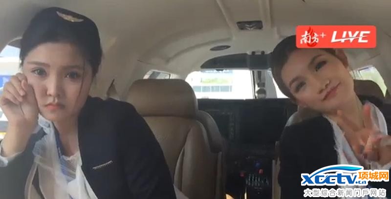 中午休息时间,有模特坐上飞机上休息,直播小分队有幸受邀请上飞机采访。这两位模特妹子说:“我喜欢这份工作,也很喜欢这架飞机,欢迎多来航展看看。”航展模特们的工作是朝九晚五的。