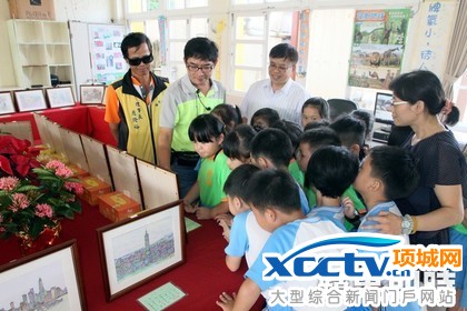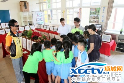 校长黄英发说,赖老师的每幅画都搭配一首台语诗创作,也透过台语诗句来赏析画作的意境,让小朋友对闽南语学习更加有兴趣。