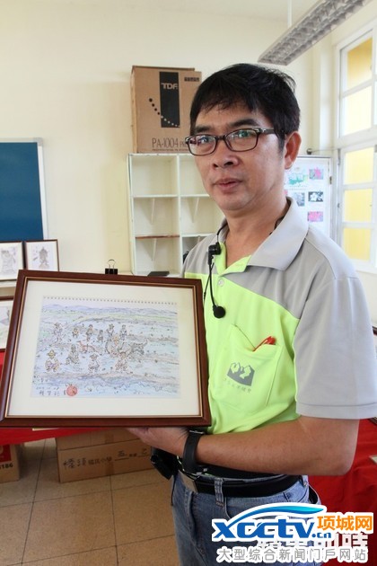 赖荣裕说,自己不是美术科班出身,签字笔画较难的是,只要有一笔画错就要重新来过,不能涂掉或擦掉,最久的一幅画了3小时,不管事生态、乡土画作,他都相当喜爱,四句联也是边画边想,没想到信手拈来,话与诗都有了。
