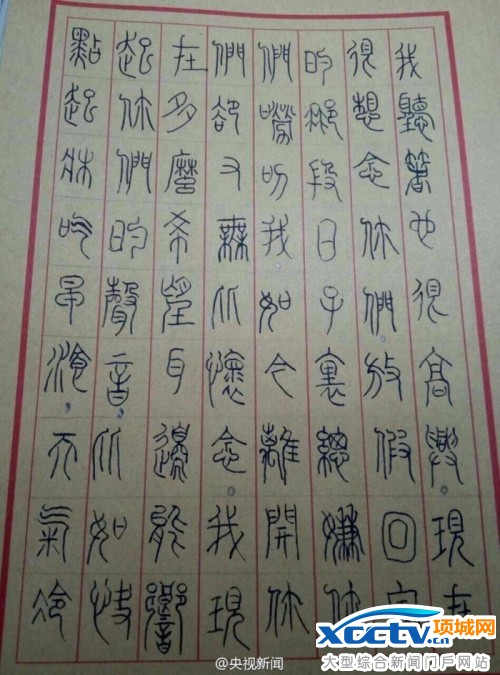 原标题:江西一老师要求大学生小篆写家书 别人家的作业这么牛(图)
