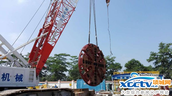 盾构机巨大的刀盘缓缓破土而出。记者 符超军 摄