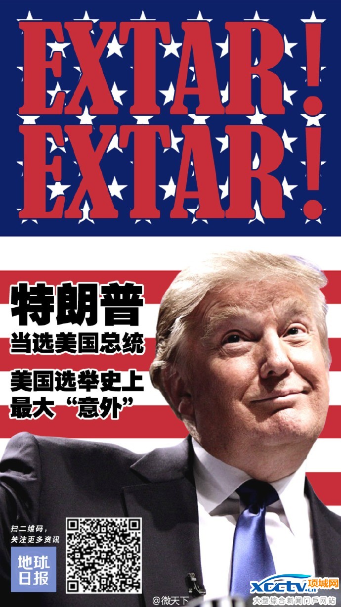 2016年美国总统选举初步结果揭晓,共和党总统候选人唐纳德·特朗普战胜民主党候选人、前国务卿希拉里·克林顿赢得总统选举,将成为美国第四十五任总统。