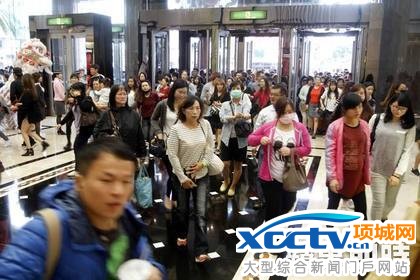 开馆时间未到,门口挤满大批人潮,大门一开,快速冲向锁定的限量商品,丝毫看不到经济不景气。