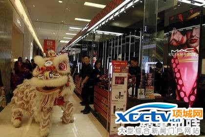 象徵幸运的舞狮绕行百货公司,待给专柜幸运。
