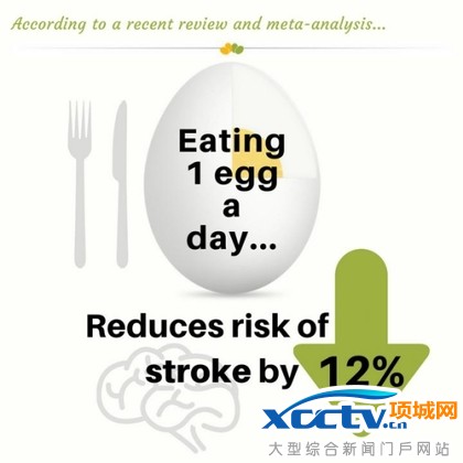 从1982年到2015年间近60万份鸡蛋摄取与中风、冠心病关係的研究个案显示,每天吃一颗鸡蛋,并不会增加罹患冠心病的风险,还可以把中风的风险降低12%。