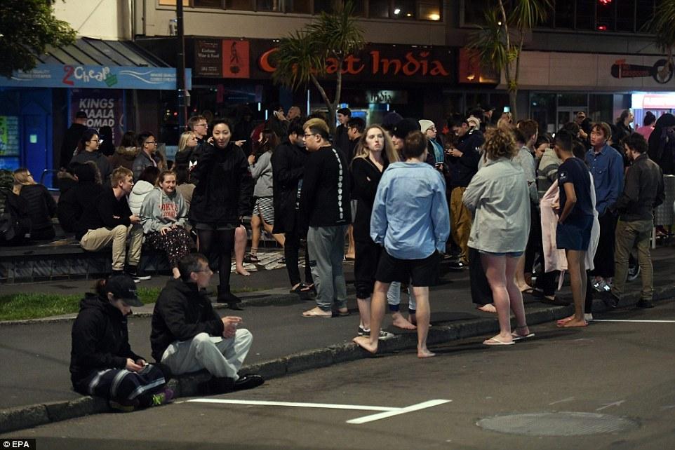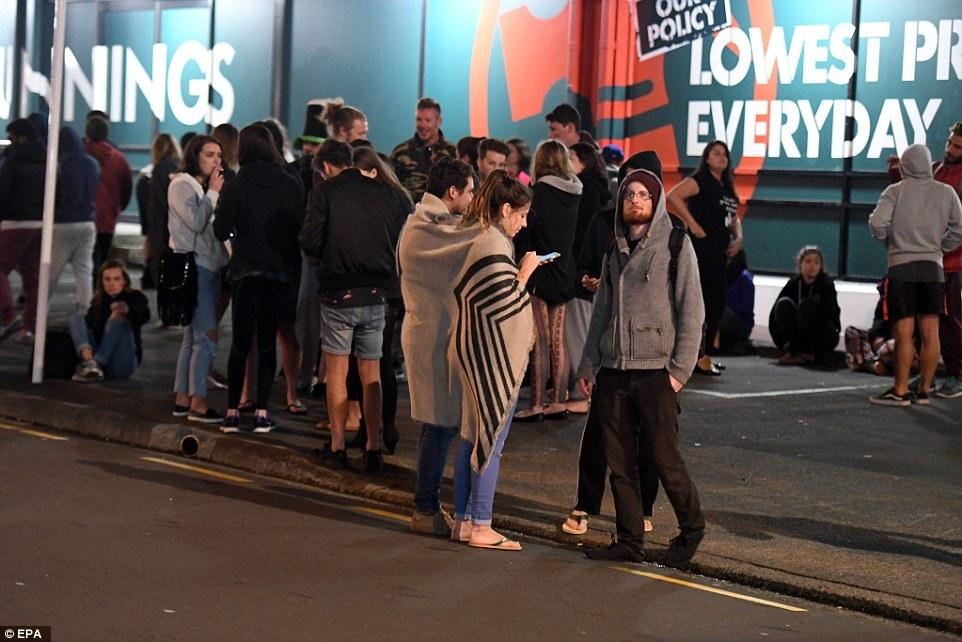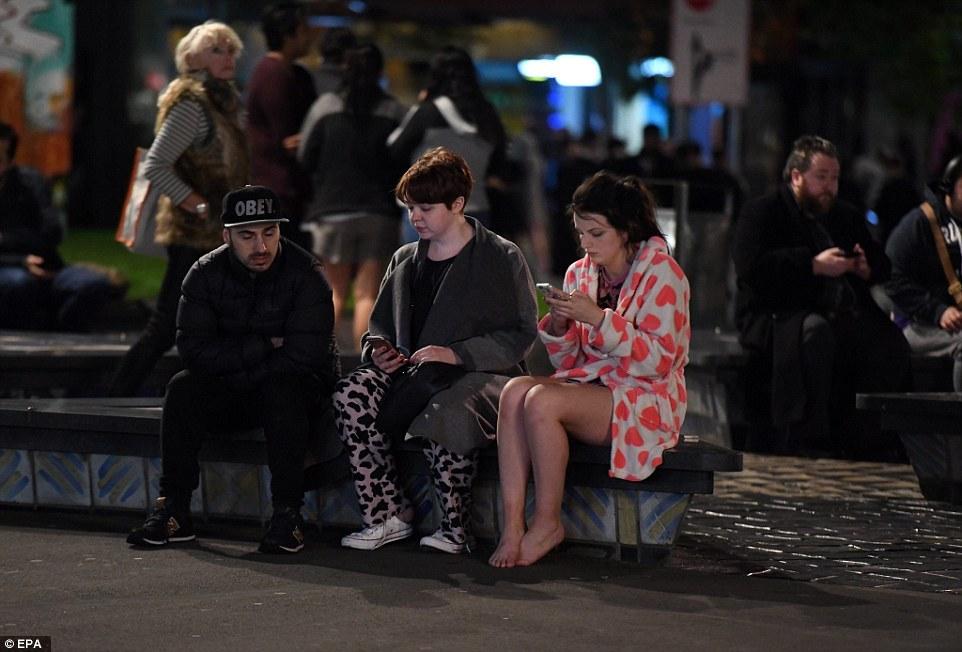 已经跑到街上避难的人们试图通过电话和亲友联系。