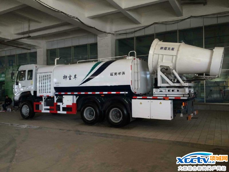雾炮车也称多功能抑尘车,它可以喷射120米远、60米高的水雾,车速最高达到10迈,司机可以通过遥控器,操纵“炮筒”270度旋转。