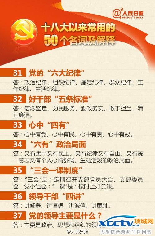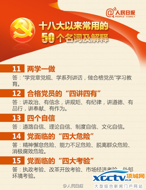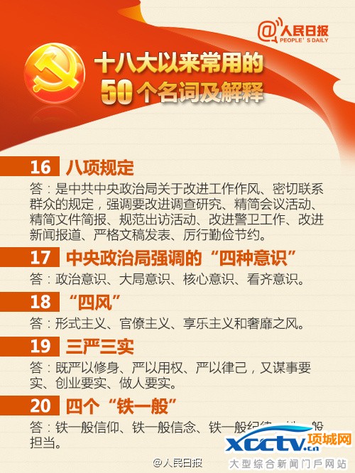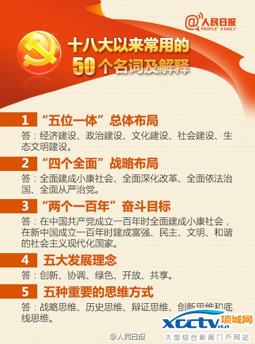 【十八大名词解释,你知道几个?】①“四个全面”战略布局:全面建成小康社会、全面深化改革、全面依法治国、全面从严治党;②“四风”:形式主义、官僚主义、享乐主义和奢靡之风;③三严三实:既严以修身、严以用权、严以律己,又谋事要实、创业要实、做人要实。