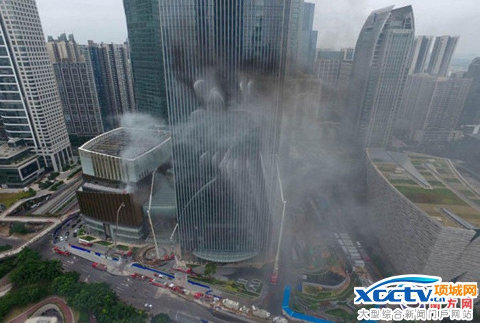 记者在现场看到,有消防官兵第一时间进入大楼疏散楼内人员。随后,广州市消防支队赶到现场,开始“水陆空”三路并进进行灭火救援。在地面,以101米云梯车、78米云梯车为首的10余辆消防车组成举高、高喷编队,向起火冒烟楼层喷水,并通过救援窗口,利用高喷车直接接驳楼层内铺设水带,开辟外部供水干线,实现向建筑内部供水。记者在现场看到,浓烟滚滚的东塔前,云梯车升到百米高的位置,向冒烟的楼层喷水,烟很快就被压制。