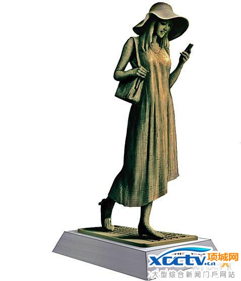 ●设计理念:作品以方格键盘贴满雕塑女郎,铸造成铜像。雕塑形象青春,形式紧扣电子产品,突出了数码主题,标志着移动互联网新时代的到来。 ●材质:铸铜●尺寸:高2.5米●作者:张海鹏,任教于华南师范大学美术学院,曾获首届广东雕塑大展最佳新人奖、08奥运景观雕塑展铜奖、首届曾竹韶基金奖、广州亚运会吉祥物制作一等奖。