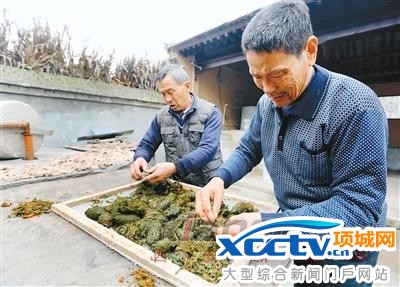 师傅们对大熊猫粪便进行分拣,保留竹子的纤维部分。 记者 黄亚平摄