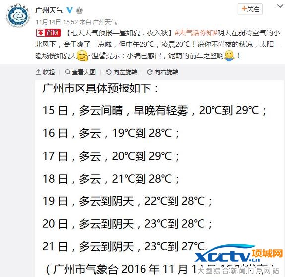 2016年11月15日广州天气预报:多云间晴 早晚有轻雾(2)